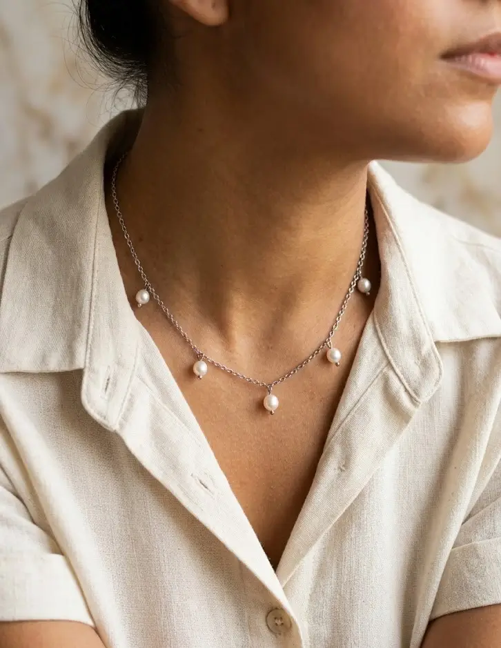 En acero inoxidable con extensor. Incluido topitos plateados.