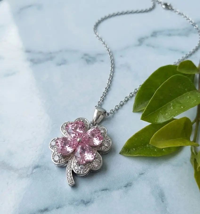 Trébol de 4 hojas, hoja de Ginkgo con circón. 45 cm con extensor dije 2cm*1.5