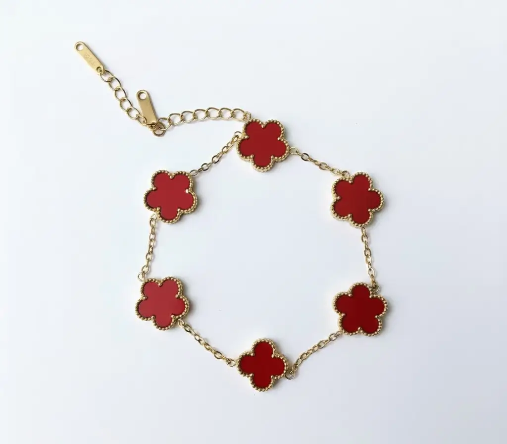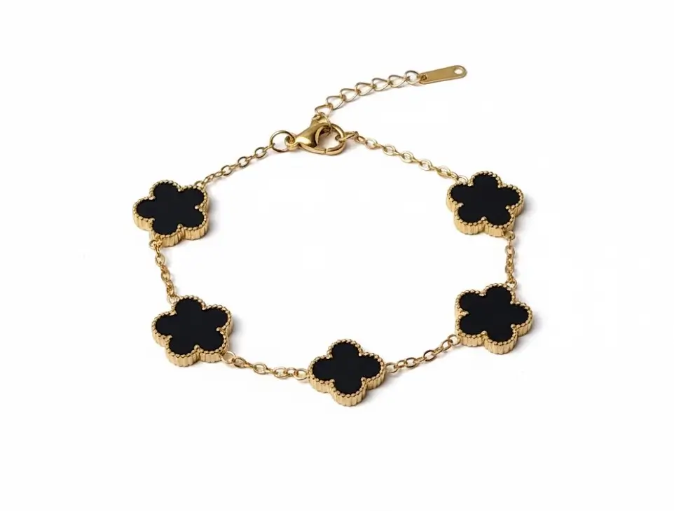 Pulsera clásico y moderno de acero inoxidable chapado en oro de 18k, con diseño trébol de 5 hojas. hipoalergénico