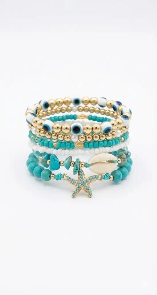 En conjunto estas pulseras aguamarinas crean un poderoso significado basado en amuletos de protección y símbolos marinos.